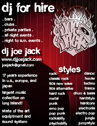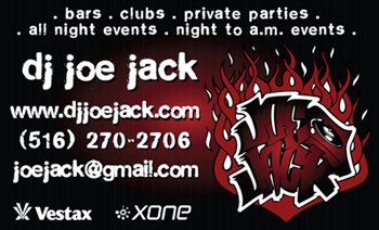 Logo, two 5' x 3' outdoor banners, and flyer created for DJ Joe Jack, a New York DJ.