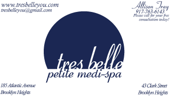 Identity package which includes a logo, business card, and mailing labels for Tres Belle, a full service medi-spa located in Brooklyn, NY.